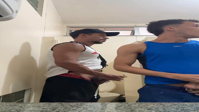 Esse novinho ficou me olhando na rua, arrastei o puto pro banheirao e quase fomos flagrados..., mas continuei socando pica, quais nem saber.